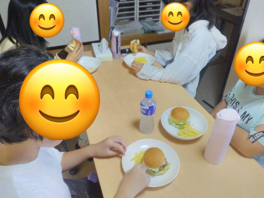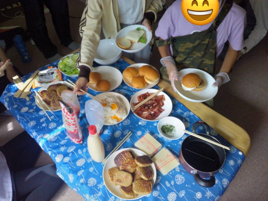 自分達でオリジナルのハンバーガーを作りあげる直前には笑顔も見受けられました。