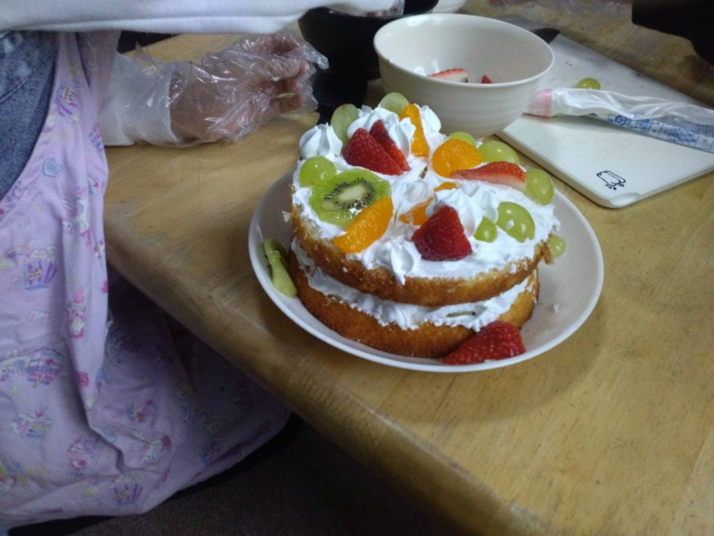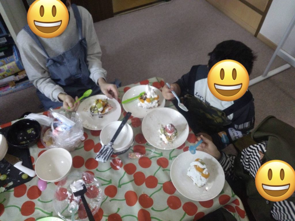 出来上がったケーキはみんなで美味しくいただきました。