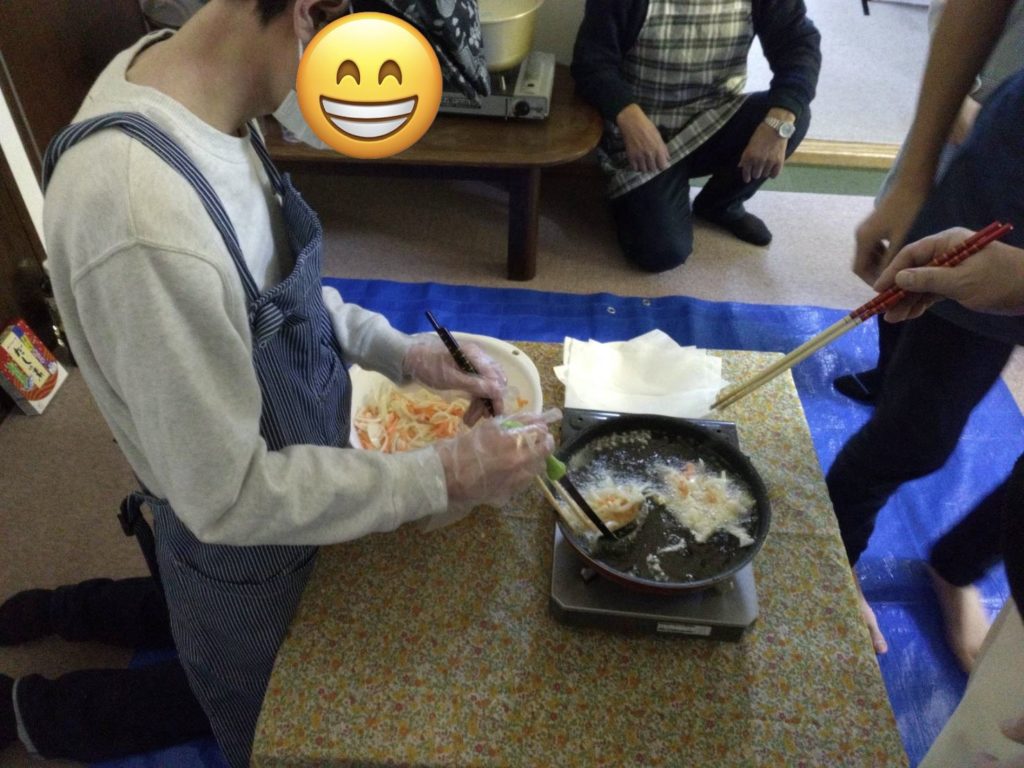 野菜をみんなで分担して調理し、油も使ってのクッキングとなりました。