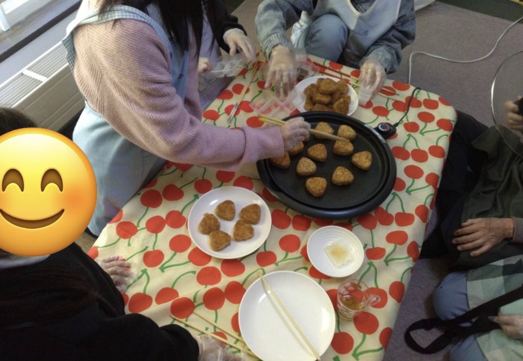 今日はクッキングでかき揚げうどんと焼きおにぎりを作りました。