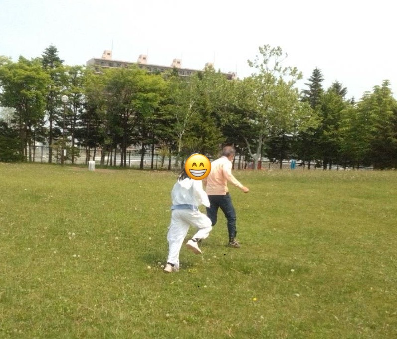 今日は星置公園へみんなでお出かけして芝生広場で鬼ごっこをしたり遊具で遊びました。