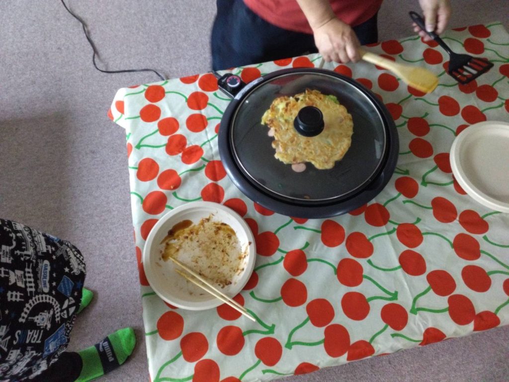 みんなで協力しながら作り上げたお好み焼きはとても美味しかったです!!