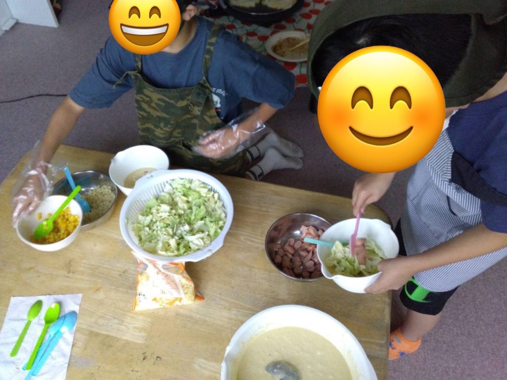 暑い中での調理でしたが、みんなで楽しくコミュニケーションを取りながら作り上げた